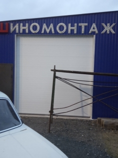 Промышленные ворота в шиномонтаж, ворота большие т.к. шиномонтаж обслуживает в т.ч. И грузовой транспорт.