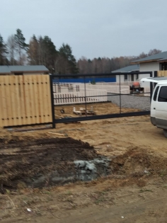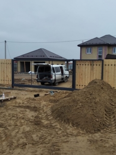 Въезд на базу, трудностей не было. Ворота без заполнение, заполнение заказчик сделал сам.